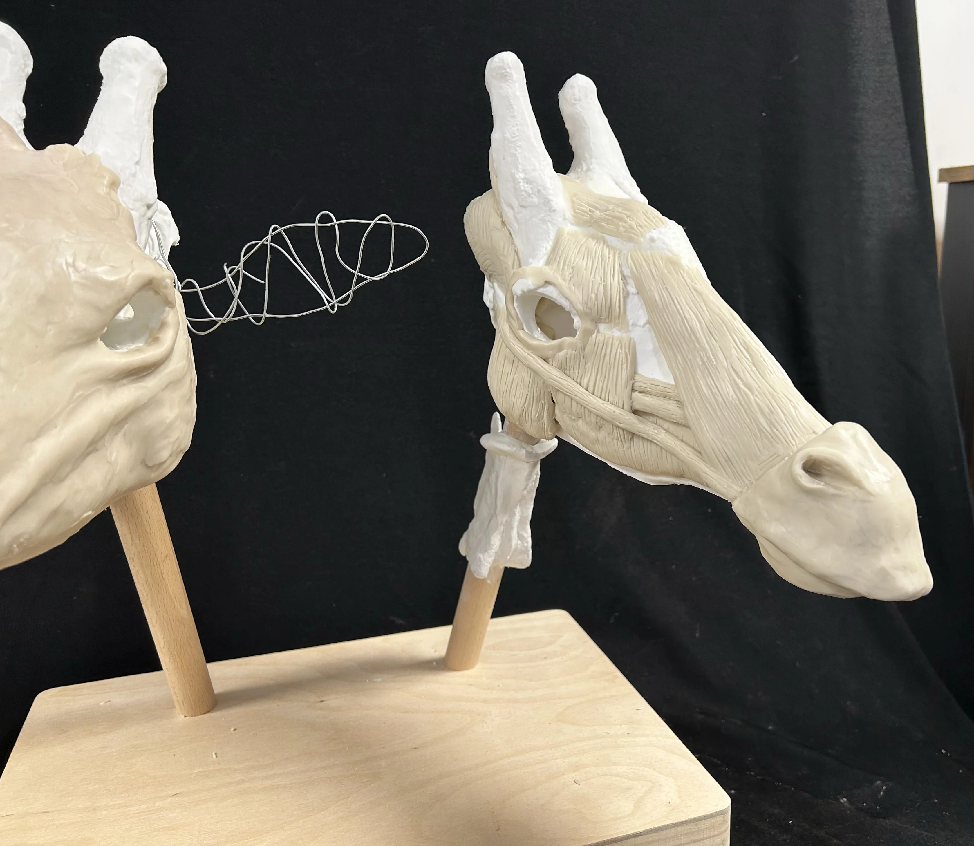 Year: 2024Materials: 3D Printed Giraffe Skulls, Sculpting Wax, Oil Paint