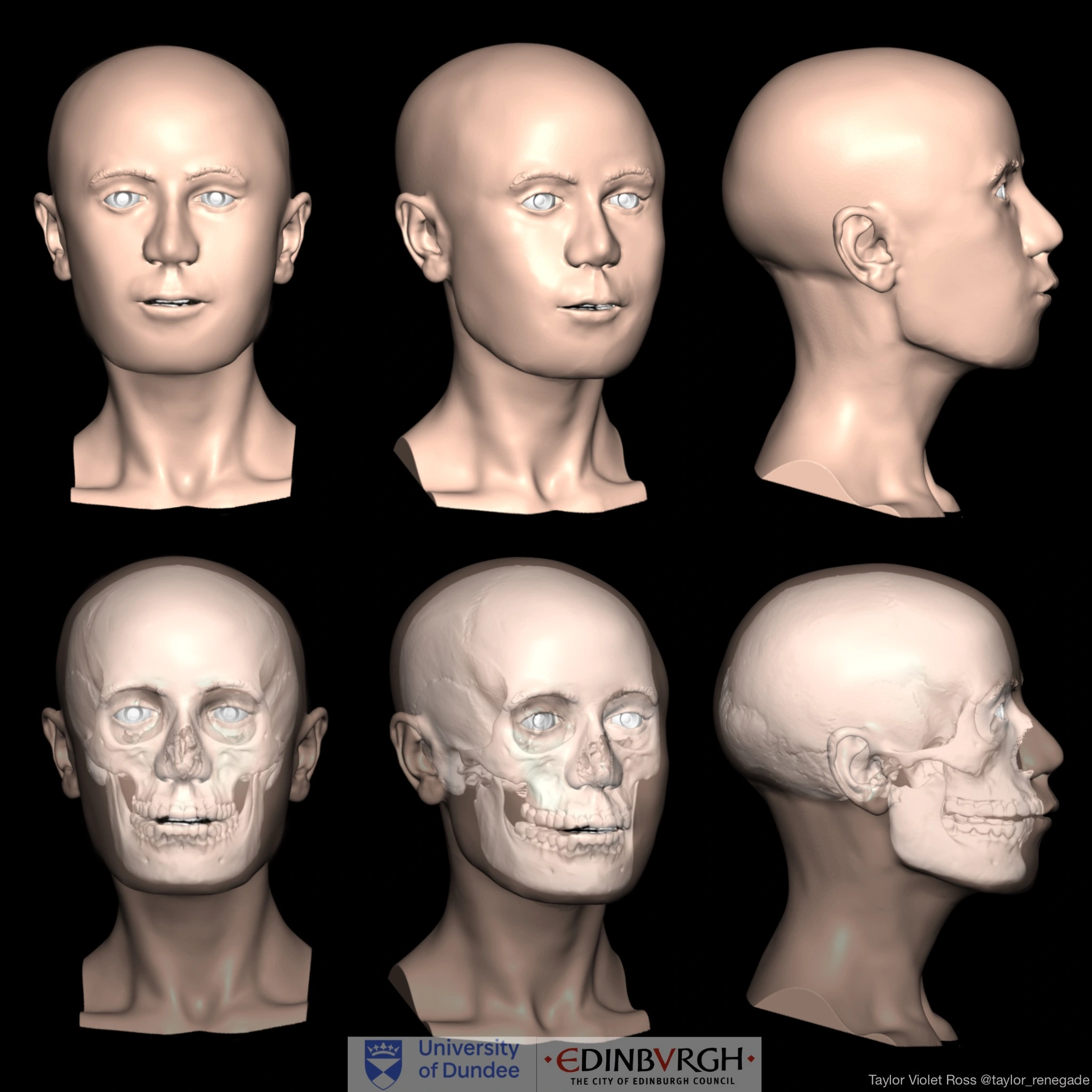 2025 update to a self-directed project created as part of my MSc Forensic Art & Facial Imaging course, in collaboration with the City Of Edinburgh Council Archeological Service (CECAS). I was provided a a 3D scan of a Medieval skull from Leith, Edinburgh and decided to do a digital 3D Craniofacial Approximation. This project was mainly done in GeoMagic FreeForm, and then a final texturing was done in 2D digitally overtop of the reconstruction within Procreate, as well as another traditional painting done with oil paint using the 3D reconstruction as a reference.