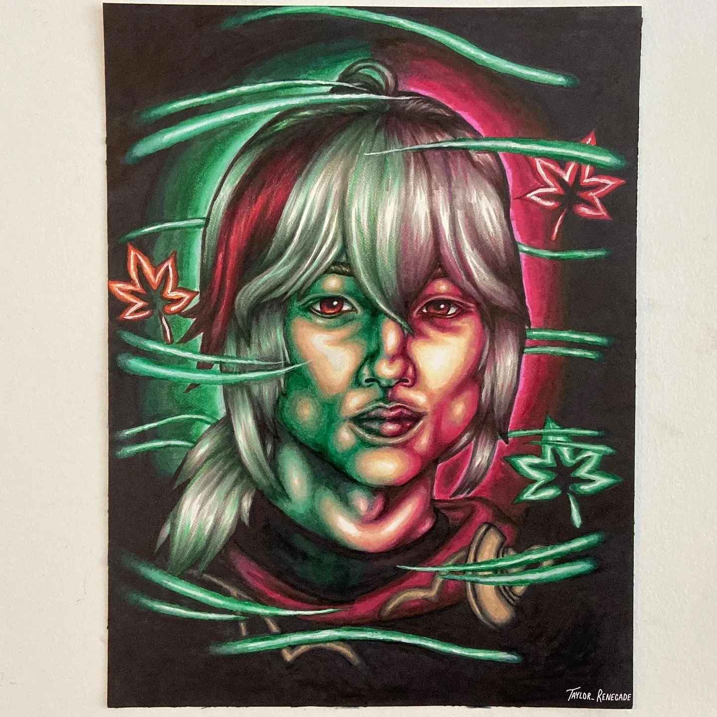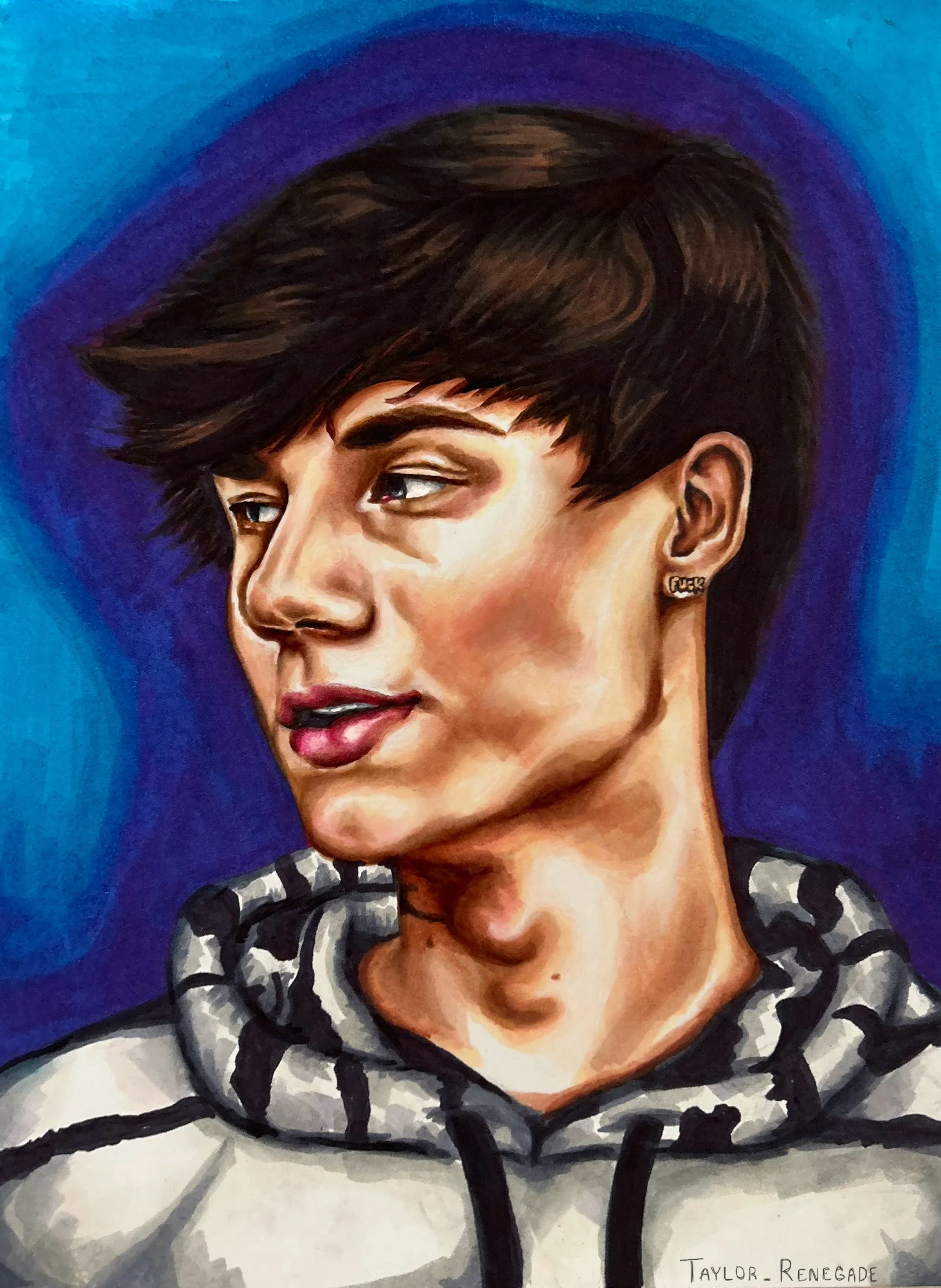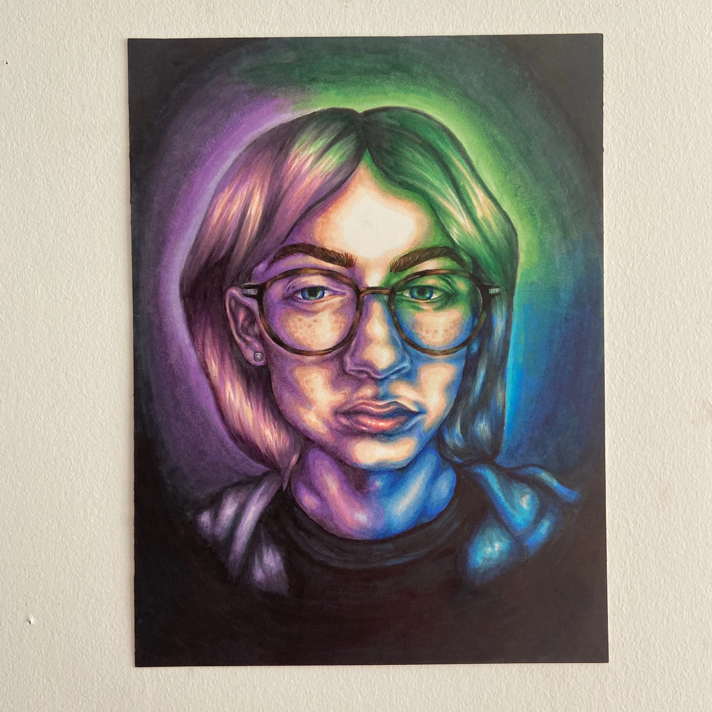 Select collection of my alcohol marker portraits, which are a way for me to practice drawing human likeness and anatomy. I like to employ elements of exaggeration, through light, shadow, and mixing in unusual colours.